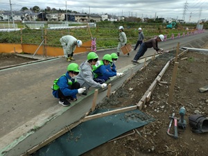 中学生のみなさんに、建設業に興味をもって頂けることを願い、現場の体験をしてもらいました。