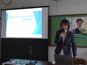 「建設業における外国人雇用の基礎知識」「CCUSについて」の2本立ての講習でした。講師は下田行政書士でした。